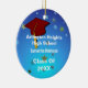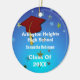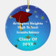 Ornamento redondo com um boné vermelho contra um fundo azul estrelado para sua estrela mais velho graduada. Texto editável para homens ou mulheres. Editor de zazzle fácil.
