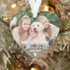 Mantenha o membro da sua família peluda perto do seu coração com este belo ornamento em forma de coração. Concebido para homenagear a memória de um querido cão, gato ou outro animal de estimação. Apresenta uma fotografia com uma sobreposição de script 'Forever in Our Hearts' branca personalizada com o nome e o tempo de vida e os detalhes da impressão da pata.