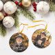 Para sempre em nosso Memorial 2 Foto Simpatia Ornament apresentando 2 fotos de seu ente querido e a tipografia rustica, porém elegante: "Para sempre em nossos Corações." Muito espaço para você personalizá-lo. Faz uma memória maravilhosa para familiares e amigos. Se precisar de assistência com o design ou produtos correspondentes, entre em contato conosco em bkthompsondesigns@gmail.com