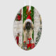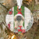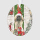 O Natal do Cachorro Pekingês sentado do lado de fora da casa decorada com coroa de Natal, a árvore de Natal é uma ideia perfeita de presente de Natal para amantes de cães.