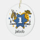 Comemore o primeiro aniversário do bebê com nosso design pequeno bonito do primeiro aniversario do vaqueiro que caracteriza a estrela de um xerife grande com o número UM, um chapéu de vaqueiro e o cavalo do brinquedo com um bandana. Texto customizável. Aperfeiçoe para festas de aniversário do tema do vaqueiro e lembranças do aniversário. Original de PinkInkArt!