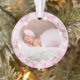 Personalizado moderno ornamento do Primeiro Natal, que apresenta uma bela coroa de neve, textura falsa de rosa dourado e uma elegante letra manuscrita no verso. Personalize o produto com o nome, o ano e duas das suas fotos favoritas. Este é um presente perfeito para avós ou excelentes - avós.