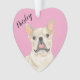 Ornamento Personalizado Coração Rosa Fawn Tan Cream Frenchie