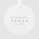 Um ornamento simples com um contorno do estado do Texas e uma bela inscrição para a palavra "lar" colocada no centro. Personalize este ornamento, inserindo sua cidade natal e personalize ainda mais, colocando o cartaz próximo à sua cidade natal na imagem do estado do Texas. Estes são presentes de excelente, guardas, e perfeitos para coleções!