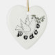 Um ornamento personalizado da paz que inclui uma pomba com um ramo de oliveira e a palavra Paz ao longo do peito da pomba, com o sinal de paz dos 60 anos.