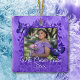 Borboletas roxas A Quinceanera mantém-se versátil para as cores do tema ameixa, violeta, lavanda. O Enfeites de natal personalizado/personalizado com borboletas roxas pode ser facilmente redimensionado e reposicionado neste presente comemorativo. O ornamento fotográfico é uma bela maneira de celebrar o 15 de aniversário da menina, ou qualquer outra celebração especial.