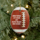Adicione o texto à frente e a foto digital à parte de trás deste Natal personalizado, Feriado ou Automação de Carro. Apresenta o futebol texturizado de pele de porco marrom-alaranjada, com imagens de cadarços na frente com seu nome, número e escola (ou outra mensagem personalizada). presente de excelente para um jogador de futebol segundo grau, foto de uma equipe esportiva ou presente para um fã desportivo!
