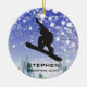 Snowboard Personalizado Ornament Natal 20XX. O Snowboarder coloca-se contra um fundo de neve. Todo texto personalizável, frente e verso!