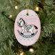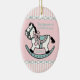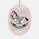 O rosa adorável e o cavalo de balanço azul com arco cor-de-rosa grande personalizaram o ornamento. Aperfeiçoe para um chá de fraldas como árvore de Natal do Tag ou do bebê do presente uma primeira. Convites customizáveis coordenados do chá de fraldas e do aniversário, selos postais, pastas da lembrança, sacolas, ímãs, artigos de papelaria do boletim de notícias, envelopes, canecas, obrigado notas e mais. Original de PinkInkArt!