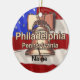 Ornamento personalizado do Philadelphia Liberty Bell por ArtMuvz Illustration. Roupa da Pensilvânia e camisas, caneca, chapéu, adesivos. Roupa de Filadélfia, t-shirt, presentes. PARA PERSONALIZAR, clique em "editar design" e, na coluna à esquerda das camadas, clique em "nome" e, em seguida, clique em "adicionar texto" nesse painel, adicione seu texto e clique em "OK" e seu texto aparecerá em seu presente personalizado. Você pode adicionar seu nome ou adicionar texto. Personalize este ornamento filadélfia para torná-lo exclusivo seu ou para dar como presente personalizado