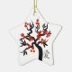 Ornamento personalizado do Símbolo de Amor Chinês da Árvore Sakura, com dois pássaros apaixonados em uma árvore sakura florescente com flores centradas no coração e o símbolo de amor chinês. Personalize com seu texto.