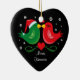 Dois pássaros do amor do Natal desejando a todos muito o Feliz Natal que caracteriza dois beijos, flocos de neve e corações dos lovebirds. O pássaro masculino está vestindo um chapéu do papai noel. O pássaro fêmea tem as pestanas bonito. Personalize-o com sua própria cumprimento ou mensagem. Excelente para casamentos do Natal, um primeiro Natal e aniversários. Original de PinkInkArt!