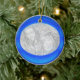Personalize a frente deste ornamento de bola azul inserindo sua própria fotografia. Personalize a parte traseira adicionando seu próprio texto (ou remova o texto do espaço reservado).