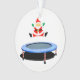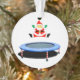 Creative trampoline Christmas keepsake ornament holiday gift featuring trampoline-jumping Santa Claus and special place for personalized name on back.