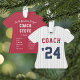 Comemore uma época incrível para o treinador de beisebol dos seus filhos com este ornamento personalizado legal com pinças de cinza e marinho azul e vermelho. Personalize a frente com o ano, com "Treinador" acima, e adicione mais detalhes à parte traseira, incluindo nome do treinador, nome da equipe ou da liga, estação e lista de equipes.