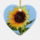 A pintura original de um girassol bonito amarelo com verde sae em um fundo azul. Mude facilmente o fundo azul a uma outra cor de sua escolha. Apenas clique sobre editam e clicam então sobre o fundo para mudá-lo. É mostrado coração cerâmico o ornamento dado forma. O ornamento perfeito para o amante de natureza, o jardineiro, o florista, ou apenas o qualquer um que ama girassóis!