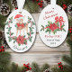 Aqui está um adorável ornamento de Feriado para um avô ou pai dar a uma criança, especialmente a uma garotinha. A frente do ornamento tem um adorável vestido de veado vestindo um chapéu de Papai Noel vermelho e branco e um arco vermelho. A madrugada fica atrás de uma bonito poinsettia e coroa sagrada. O nome do seu filho está em verde correspondente em texto curvo na parte inferior. A parte de trás do ornamento tem um buquê poinsettia correspondente em frente a um pacote de presentes e 4 campos de texto para sua mensagem personalizada. Fácil de personalizar, e isso faz uma maravilhosa manutenção.
