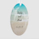 Personalize este ornamento de favoritos de casamento sobre temas tropicais com texto de ambos os lados. Duas estrelas de estrelas-do-mar são impressas sobre um oceano e uma imagem de praia turquesa para representar o novo casal. Os nomes e a data do casamento podem ser impressos na frente, com o casamento no verso. Use como guardião, ou dê aos convidados de casamento como um favor obrigado.