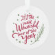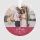 Um ornamento verdadeiramente uma lembrança com a sua foto de casamento favorita, caligrafia Sr. & Sra. com coração conectando, e o nome da sua família com o ano na cor do ano - rosa vermelho! No outro lado está a sua frase de Natal favorita "É o momento mais maravilhoso do ano" com elementos decorativos. Faz um presente encantador!!