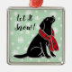 Ornamento preto do lenço do Tartan de Labrador. Os desenhos animados lunáticos e engraçados do cão de labrador retriever criaram por Naomi Ochiai de Japão. Presentes agradáveis para os amantes do cão que amam Labradors. Um innocent que olha Labrador preto mostra fora seu/seu lenço novo da xadrez de tartan envolvidos por seu/sua mamã na neve arquivada. Teste padrão dos flocos de neve. Para fãs pretos do laboratório! Você pode personalizar o texto.