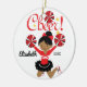 Ornamento bonito do cheerleader do afro-americano do elogio preto & vermelho. Fácil personalizar com seus nome & data. Visite nossa loja para ver este ornamento em uma grande variedade de cores da escola & de cores do cabelo