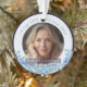 Honor a loved one’s memory with this elegant photo memorial ornament, featuring delicate blue forget-me-nots flowers framing your cherished photo. The front includes your loved one’s name and dates, while the back displays another photo with the heartfelt message “Forever in our hearts.” A beautiful keepsake to remember and celebrate a life filled with love. Hanging on the Christmas tree or displaying year-round in remembrance.