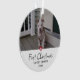 Puppies Primeiro ornamento de Natal. O design mostra a sua foto favorita, a impressão decorativa da pata de sotaque com o coração partido em letras vermelhas e brancas.