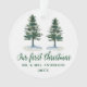 Manuscrito Elegante moderno de caligrafia, Árvores de Pinheiros de Aquarela, Nosso Primeiro Natal, Sr. e Sra. Ornament de Casal de Casamento