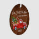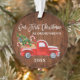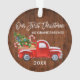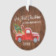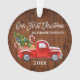 Escrita de Pincel Moderna Nosso Primeiro Natal como Ornamento de Avós inclui Watercolor Vintage Red Truck com Árvore de Natal, Neve, Presentes de Natal e Canes Doces. Impressão de madeira rustica.