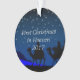 Primeiro Natal no ornamento do céu, um presente do sweetl para alguém que sofreu a perda de uma amada este ano passado. Pode ser personalizado com um nome, usando as ferramentas do modelo para escolher a pia batismal e a cor da pia batismal. Azul profundo com um fundo das estrelas e dos wisemen em camelos.