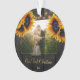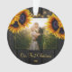 Foto de casamento de recém-casados russos Primeiro Natal como Sr. e Sra. personalizaram o ornamento de árvore com buquês de girassol de ouro amarelo sobre uma madeira castanha escura com luzes de cordas. ++++++++ Fácil de personalizar com seus nomes, texto e foto! +++++++++ Pode ser um presente de manutenção bonito para um novo casal.