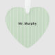 Obrigado seu professor de inglês com este ornamento de maçã. O fundo mostra listras verdes pálidas que suportam a maçã na frente.