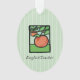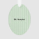 Obrigado seu professor de inglês com este ornamento de maçã. O fundo mostra listras verdes pálidas que suportam a maçã na frente.