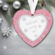 Que maneira maravilhosa e romântica de propor casamento à sua querida! Este ornamento bonito apresenta um coração branco enquadrado em imagens de gema de diamante falsa em um bonito fundo cor-de-rosa rosa e prateado floral damask. Dentro o coração branco é o texto que você faz na cinza prateada correspondente, além de imagens em flocos de neve brilhantes. O texto é totalmente personalizável, então você pode fazê-lo dizer o que quiser. Há um campo de texto de segundo na parte traseira, que tem a mesma borda falsa de diamante e a mesma imagem dentro. Este é um presente especial que será precioso para sempre. *Observe que a imagem está impressa e o ornamento não contém metal, brilho ou gemas.*