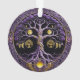 Featuring original digital art by the artist, a holiday tree ornament featuring a striking purple and gold Tree of Life mandala design.