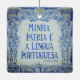 Belo ornamento cerâmico de dois lados, com azulejos portugueses (azulejos decorativos). Um dos lados apresenta uma citação do autor Fernando Pessoa "A Minha Pátria é a Língua Portuguesa" (Minha pátria é a Língua Portuguesa).