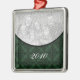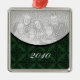 Ornamento Quadrado Premium de Damasco Feriado Elegante e Quadrado em verde escuro. Faça deste Enfeites de natal um bem-estar tesouro adicionando uma foto de família e o ano atual. Este adorno damasco elegante faria um excelente estocante ou um favor de festas de férias!