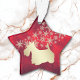 Este único ornamento Holiday fará um maravilhoso presente de manutenção para qualquer um que ama um Terrier escocês! Apresenta uma silhueta dourada, imagem de cão escocês em frente a um spray de flocos de neve de ouro ornamentado. A imagem é colocada sobre um gradiente fundo vermelho de Natal profundo. A parte de trás do ornamento tem o mesmo fundo vermelho e flocos de neve dourados, e um campo de texto para você personalizar. Bonito!