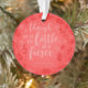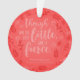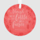Decorem a vossa árvore de Natal com este ornamento redondo, que apresenta a citação do Sonho "A MidSummer Night" de William Shakespeare, "Apesar de ser pouco, é feroz" rodeada por flores e folhas contra um fundo de gradiente vermelho. *Observe que a Marca d'água do Zazzle que aparece na visualização de zoom não aparecerá no produto impresso final. © Bookish e Maravilha
