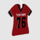 Uma camisa de futebol vermelha e negra com Photo. Mude o número e os nomes e faça o upload de uma foto favorita.