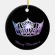 Ornamento decorativo mostrado em preto com forma redonda com uma impressão de Lavanda de coroa de brilhante e texto de coordenação do Feliz Natal. Personalize este item ou comprar como está.
