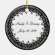 Personalize este ornamento bonito para ter como favores de casamento na sua recepção de casamento ou para ter um como lembrança do seu dia especial. Excelente de fotos do seu evento para dar a cada um de seus convidados como lembrança do seu dia especial. Personalize adicionando sua foto, nomes e data. Você pode alterar o estilo, o tamanho e a cor da fonte.