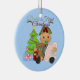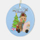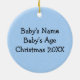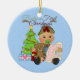 A parte dianteira redonda do ornamento do ø Natal do bebé caracteriza uma luz - fundo nevado azul (customizável), um bebé bonito dos desenhos animados em uma ligação em ponte azul, camisa vermelha, banda verde do cabelo com azevinho, guardarando o urso de ursinho e a cobertura cor-de-rosa. Há igualmente uma árvore de Natal decorada com os presentes sob ela. O texto estilizado colorido é meu primeiro Natal. A parte traseira caracteriza uma luz - fundo nevado azul (customizável), e o texto para o nome, a idade e a data do seu bebê. Presente perfeito da lembrança para o Natal! Para personalizar a cor do fundo - suprima da imagem de fundo - clique o azul "personalizam-no" botão, - clique sobre o "X" ao lado da imagem de fundo, a seguir clique-o sobre "editam" então o "fundo", escolhem sua cor e clicam-na sobre "feito".