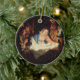 Este ornamento cerâmico redondo do feriado do Natal tem paiting do vintage da cena da natividade. Jesus está colocando no comedoiro com a Mary e o Joseph que olham sobre ele.