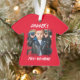 Crie um enfeite para lembrar a primeira festa de aniversário de sua estrela rock. Este ornamento personalizado em forma de t-shirt único tem o estilo rock and roll concert e apresenta uma fotografia na frente e uma imagem personalizada de vinil gravada no verso juntamente com o ano. Um presente de excelente feriado para familiares ou um favor partidário para um primeiro aniversario de rockin. Um Rochedo! Mostrado em vermelho. Todo o texto e a maioria das cores podem ser personalizados.