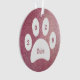 Aqui está um adorável ornamento de guardas com a foto do seu gatinho precioso de um lado. O outro lado tem uma pata branca com o nome do seu animal de estimação e o ano atual em um fundo brilhante de rosa dourado.