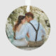 Russo e moderno personalizado Primeiro ornamento cerâmico de Natal com elegante escrita à mão e textura rústica de rosa de madeira de ouro. Personalize o produto com o ano, o nome da família e sua foto favorita de casamento.