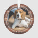 Honre o seu melhor amigo com um ornamento personalizado de memorial de fotos. Esta única manutenção do ornamento memorial de animais de estimação é o presente perfeito para você, família ou amigos para prestar tributo ao seu amado. Este ornamento exclusivo do memorial do cão apresenta as suas fotografias, Citação "A Sua Vida foi uma Bênção, a Sua Memória é um tesouro, Você é Amado Além das Palavras, Perdido Além da Medida". Personalize com fotos favoritas de cães de estimação ou gatos e nome. O pedido é de dois lados, você pode fazer duas fotos favoritas, uma em cada lado. Personalize o nome na frente e as datas na parte de trás. COPYRIGHT © 2020 Judy Burrows, Black Dog Art - Todos Os Direitos Reservados. Pet Memorial Rustic Pet Perde Guarda Pão Cão Ornamento Fotográfico