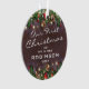 Enfeites de natal rústico personalizado de recém-casados com fundo de madeira escura, ramos festivos de árvores de natal, decorações de árvores vermelhas e douradas, luzes cintilantes de cordas, o adorável ditado "nosso primeiro natal como mr & mrs", seu nome e o ano. No verso está uma foto do seu neto.