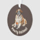 Ilustração aquosa de um cão Bernard Santo sentado em frente a um copo. Texto personalizado de ambos os lados.